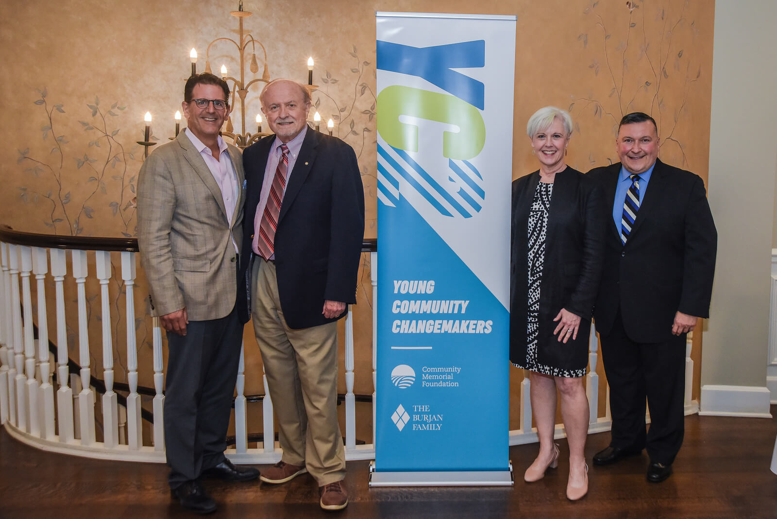 Mike Bruni (CMF Board Chair), Jerry Burjan (President, Burcor Properties), Sue Christoph (CMF Board Member), and Greg DiDomenico (CMF President & CEO) at the launch of the YC2 Program  |  Photo by Glenn Kaupert, © 2018